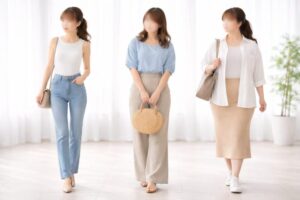 また、「体型カバーしたい」「脚を長く見せたい」「きれいめに着たい」など、目的によっても選ぶべきパンツは変わってきます。なんとなく選ぶのではなく、ポイントを押さえて選ぶことで、失敗しにくくなります。