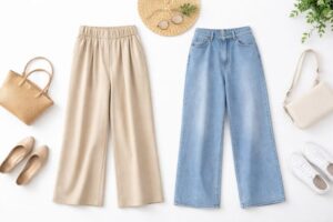 さらに、丈感や素材、ウエスト位置などの細かいポイントにも目を向けることで、同じワイドやバギーでも印象は大きく変わります。試着できる場合は全身のバランスを確認し、ネットで購入する場合はサイズ表や着用画像をしっかりチェックすることが失敗を防ぐコツです。