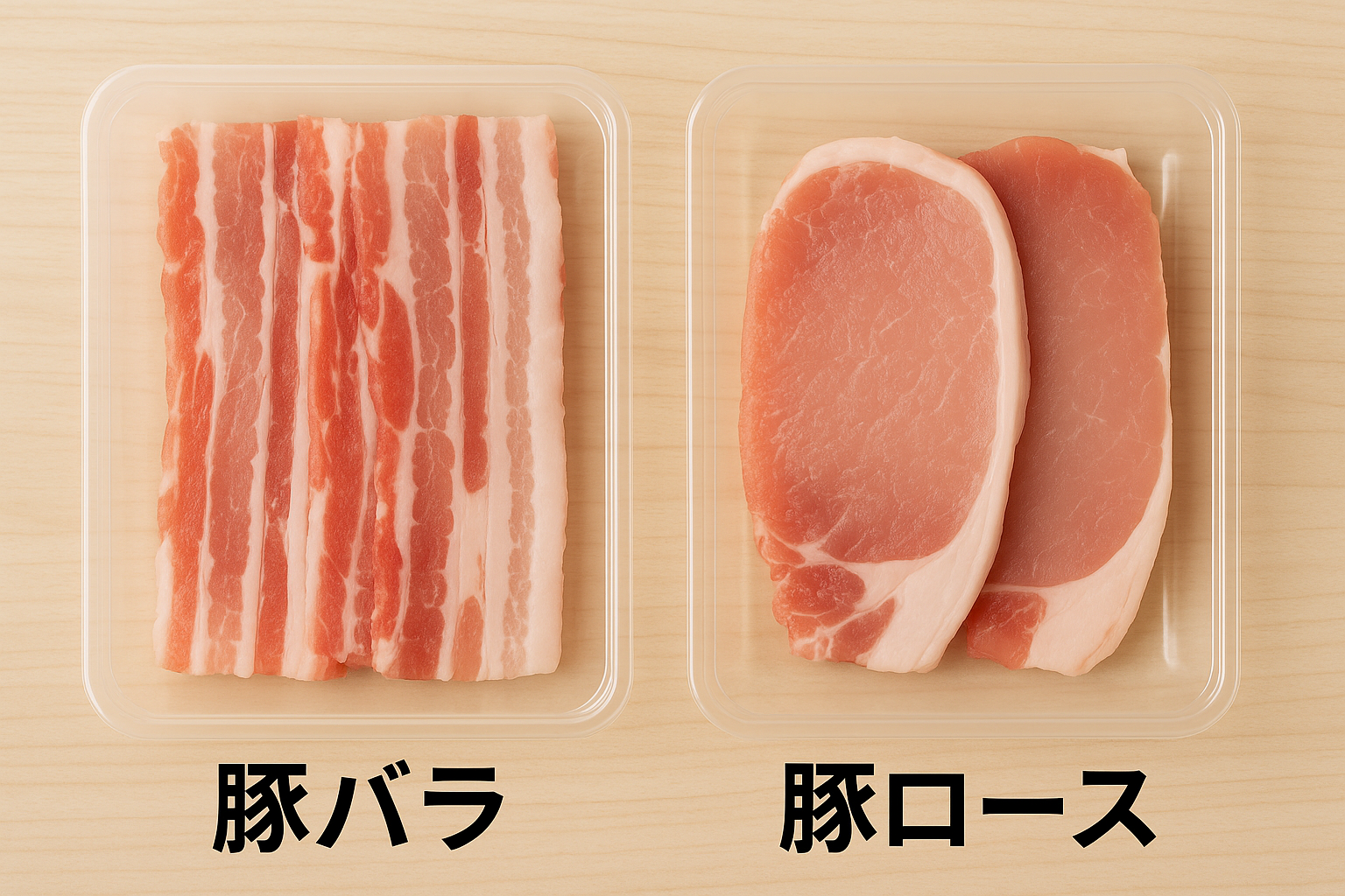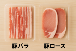 実はこのテーマ、“豚バラ=安い、豚ロース=高い”と決めつけると失敗しやすいんです。なぜなら、豚肉は部位だけでなく、切り方(薄切り・とんかつ用・ブロック)や産地、銘柄、脂の付き方、売り場の特売方針で価格がけっこう変わるから。