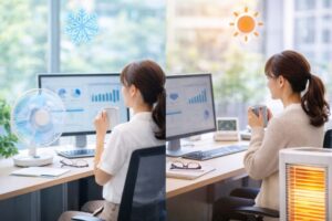 そのため、気温的には暑い・寒いと感じていても、自己判断で切り替えるよりは、周囲の様子や正式な案内に従うほうが安心です。もし判断に迷った場合は、先輩社員や総務担当に相談することで、不要な不安を抱えずに済みます。