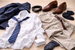 ジャケットやシャツにシワがないか、靴はきれいな状態か、ベルトやネクタイなどの小物がそろっているかも、このタイミングで確認しておくと当日の準備がスムーズになります。必要なものをまとめておくことで、朝のバタバタを減らしやすくなります。