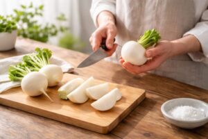 皮付きのままかぶを漬ける場合は、下処理をていねいに行うことで、仕上がりの味や食感が安定しやすくなります。特別な道具や難しい工程は必要ありませんが、いくつか意識しておきたいポイントがあります。