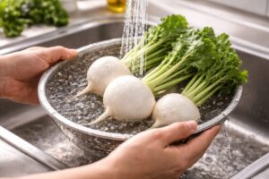 - かぶを洗い、必要に応じて皮を処理する
