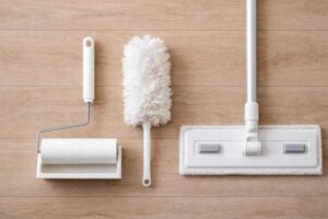 ベッド下掃除は、高価な道具を用意しなくても始められます。まず揃えたいのは、フロアワイパー、ドライシート、必要に応じて粘着ローラーの3つです。