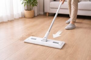 掃除を始める前に、床に置いてある物を少しどけるだけで作業効率は大きく変わります。通り道が確保されるとワイパーをまっすぐ動かせるため、無駄な動きが減ります。また、あらかじめゴミ袋や替えシートを近くに用意しておくと、途中で中断せずに最後までスムーズに進められます。短時間で終わらせるためには、「掃除そのもの」だけでなく「準備の簡単さ」も意識するのがポイントです。